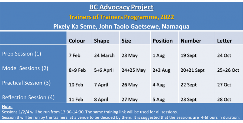 Northern Cape Project (2022-2023): Trainer-of-Trainers Programme, 2022