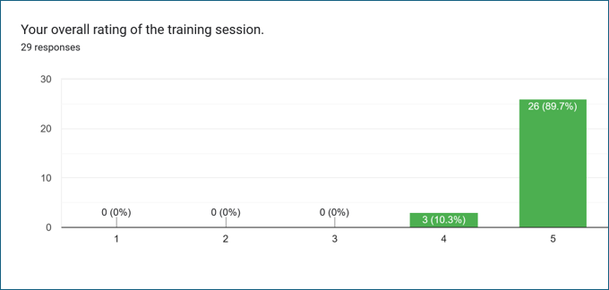 All participants rated the session highly, with 90% awarding it the top score of 5/5 and the remaining 10% giving it 4/5.