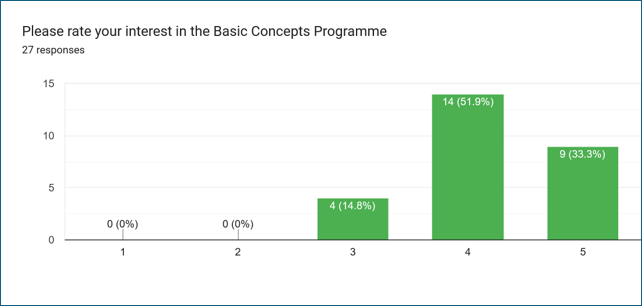 85% of participants rated their interest in the BCP as "good" or "excellent," demonstrating a strong enthusiasm for the programme. Meanwhile, 15% rated their interest as "average," still indicating a positive overall response.