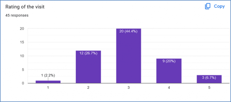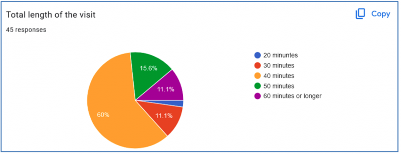 The majority (60%) of the visits per teacher/school have on average been 40 minutes in duration, while 27% of the visits have been between 50-60 minutes.
