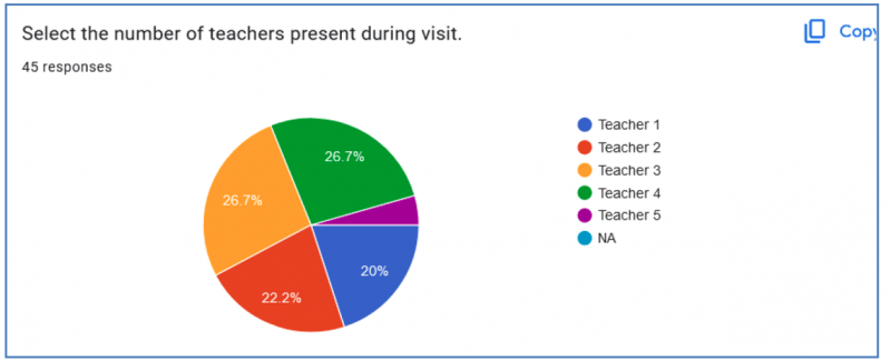 The number of teachers present at each school visit varies between 1 to 5 teachers, depending on the number of project teachers at the school.